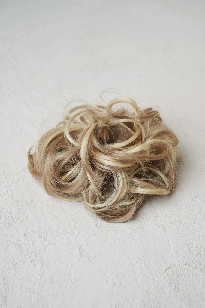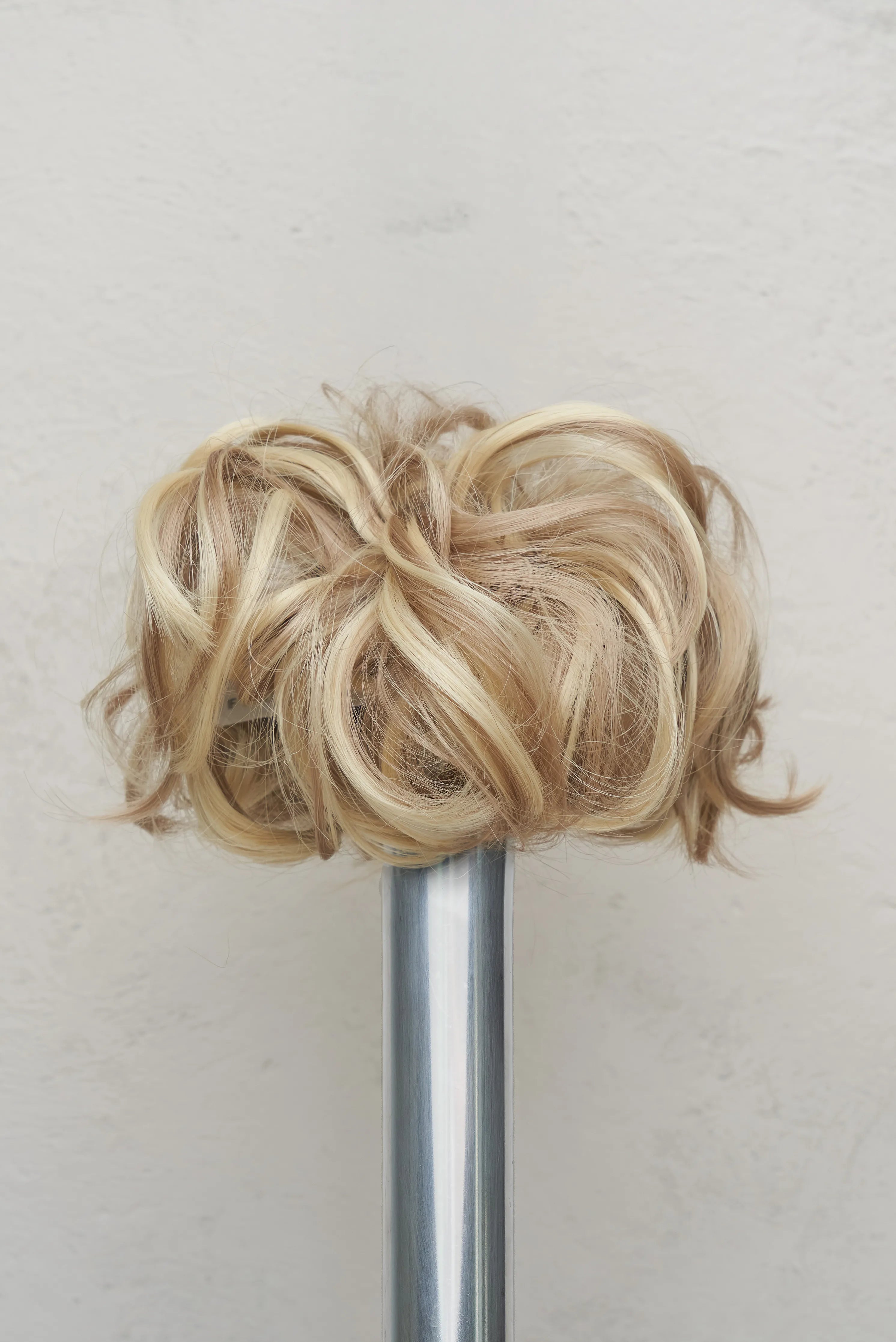 Messy Bun Hair Scrunchie Highlighted Champagne Blonde